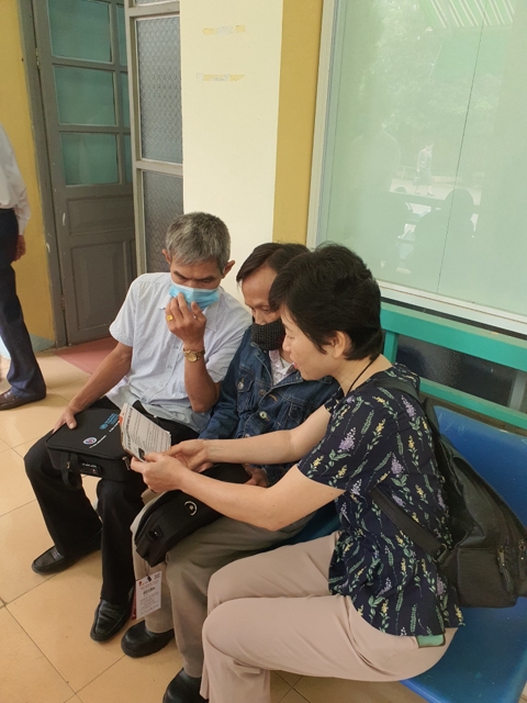 Cán bộ Cục Phòng, chống HIV/AIDS hướng dẫn các sử dụng Túi đựng thuốc mang về