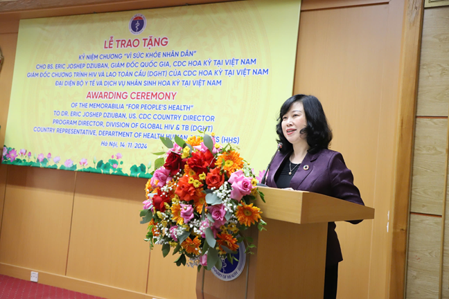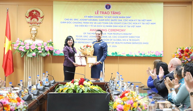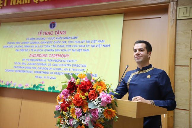 Chiều ngày 14/11, tại Hà Nội, Bộ Y tế long trọng tổ chức lễ trao Kỷ niệm chương "Vì sức khỏe nhân dân" cho Tiến sĩ Eric Joseph Dziuban, Giám đốc Quốc gia, CDC Hoa Kỳ tại Việt Nam, Giám đốc Chương trình HIV và Lao toàn cầu của CDC Hoa Kỳ tại Việt Nam nhằm ghi nhận những đóng góp đặc biệt của ông cho sự nghiệp bảo vệ và chăm sóc sức khỏe cộng đồng tại Việt Nam.