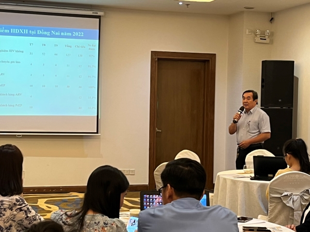 BS Nguyễn Xuân Quang - Trung tâm Kiểm soát bệnh tật tỉnh Đồng Nai báo cáo kết quả triển khai thí điểm HĐXH tại tỉnh