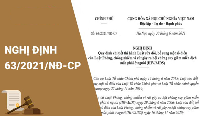 Ngày 30/6/2021, Nghị định số 63/2021/NĐ-CP đã được Thủ tướng Chính phủ ký ban hành nhằm quy định chi tiết thi hành Luật sửa đổi, bổ sung một số điều của Luật Phòng, chống nhiễm vi rút gây ra hội chứng suy giảm miễn dịch mắc phải ở người (HIV/AIDS).