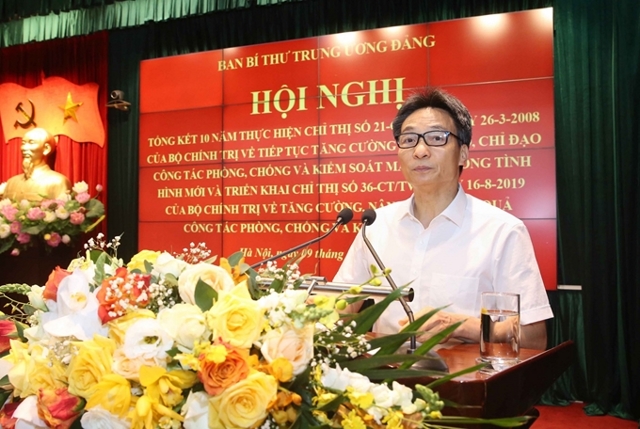 Phó Thủ tướng Chính phủ Vũ Đức Đam, Chủ tịch UBQG phòng, chống AIDS và phòng, chống tệ nạn ma túy, mại dâm phát biểu tại hội nghị triển khai Chỉ thị 36 của Bộ Chính trị