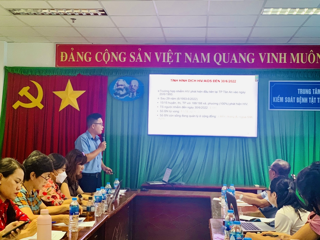 Báo cáo tại buổi làm việc, Ths. Nguyễn Thanh Sơn, Phó Trưởng Khoa phòng, chống HIV cho biết: Kể từ trường hợp nhiễm HIV đầu tiên tại Thành phố Tân An vào năm 1993, đến tháng 6/2022, đã có 15/15 huyện, thị, thành phố với 188/188 xã phường phát hiện HIV với 4.880 ca nhiễm, hơn 1.500 ca tử vong và số bệnh nhân còn sống đang quản lý ở cộng đồng là 3.889 người. Riêng trong 6 tháng đầu năm 2022, toàn tỉnh phát hiện 187 người nhiễm HIV mới, trong đó có 79 ca ngoại tỉnh, tử vong 18. So với cùng kỳ năm 2021, số trường hợp nhiễm HIV mới tăng 45 ca, tử vong bằng cùng kỳ. Số bệnh nhân nội tỉnh còn sống đang quản lý là 3.269 và 620 bệnh nhân ngoại tỉnh.