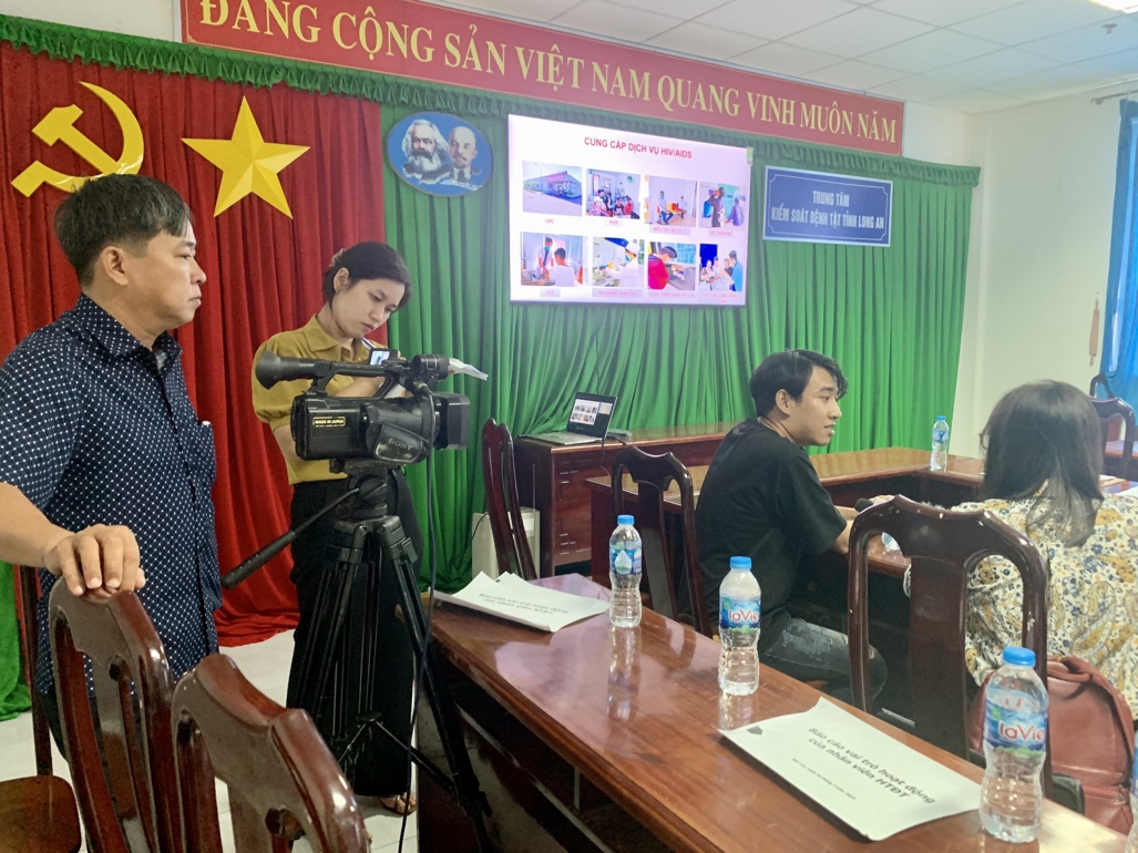 Đoàn phóng viên trao đổi cùng bác sĩ tại Bệnh viện đa khoa Khu vực Đồng Tháp Mười về tình hình điều trị cho bệnh nhân nhiễm HIV