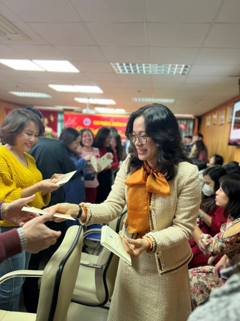 PGS.TS. Phan Thị Thu Hương, Cục trưởng Cục Phòng, chống HIV/AIDS lì xì cho các cán bộ công nhân viên chức của Cục