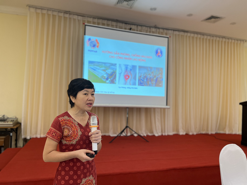 Ths. Cao Kim Thoa, Phó Trưởng Phòng Dự phòng lây nhiễm HIV chia sẻ các nội dung chính của Hướng dẫn phòng, chống HIV/AIDS cho công nhân lao động.