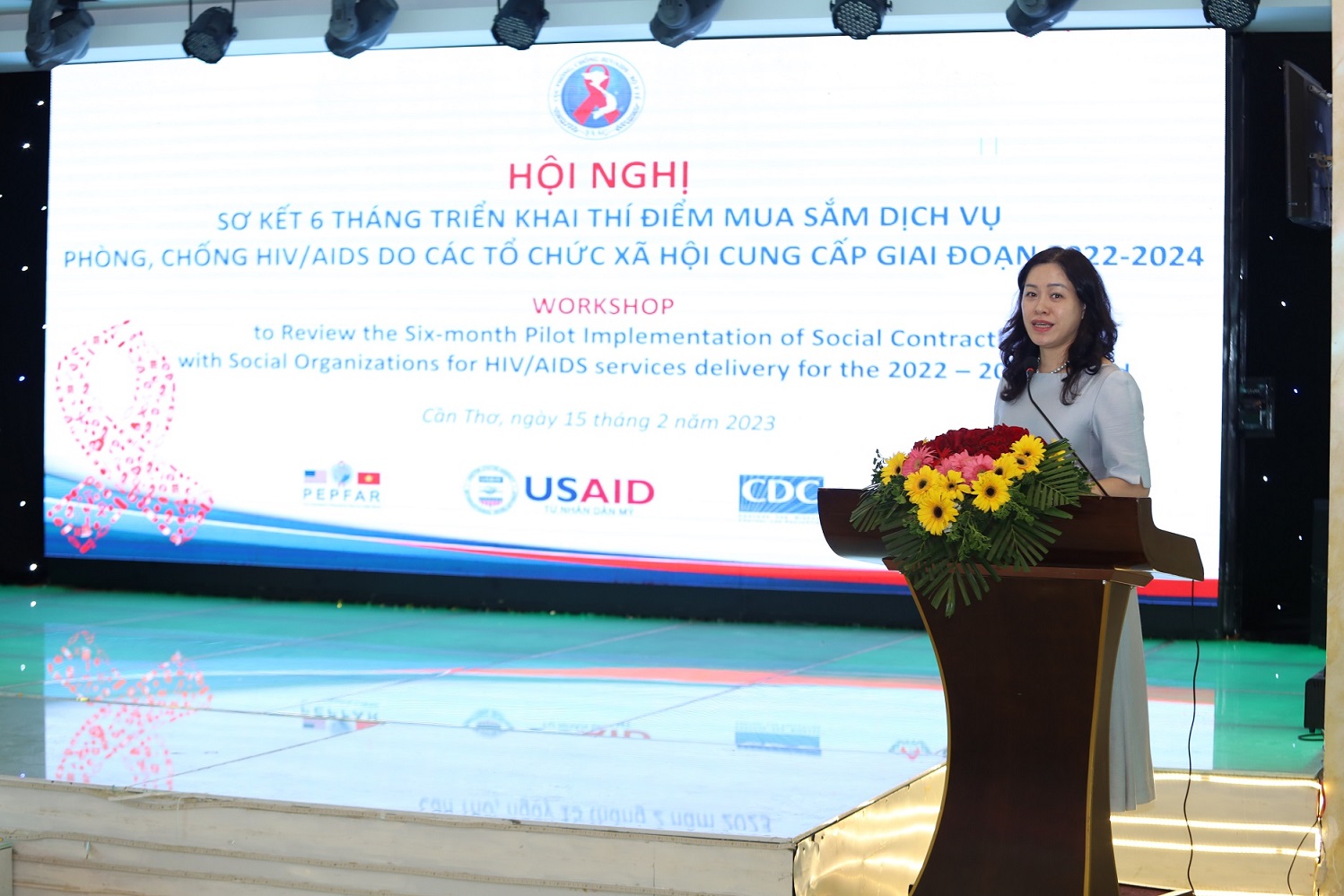 Phát biểu khai mạc hội thảo, PGS.TS Phan Thị Thu Hương đánh giá cao sự tham gia của khối các tổ chức cộng đồng tham gia vào cung cấp dịch vụ HIV/AIDS, đồng thời biểu dương sự nỗ lực của 9 tỉnh thành tham gia chương trình thí điểm. Theo Cục Phòng, chống HIV/AIDS ước tính, các tổ chức xã hội có thể đóng góp từ 25 - 50% trong việc cung cấp một số dịch vụ phòng, chống HIV/AIDS. Chính vì vậy cần mở rộng việc thực hiện mô hình hợp đồng xã hội thực hiện phòng chống HIV/AIDS. Trong đó Nhà nước cần đưa ra các quy định về tiêu chuẩn, điều kiện và hỗ trợ để các tổ chức xã hội có thể tham gia cung cấp dịch vụ phòng, chống HIV/AIDS. Bố trí nguồn lực và tạo môi trường pháp lý thuận lợi để các tổ chức xã hội ký hợp đồng và sử dụng nguồn vốn ngân sách trong cung cấp dịch vụ phòng, chống HIV/AIDS.