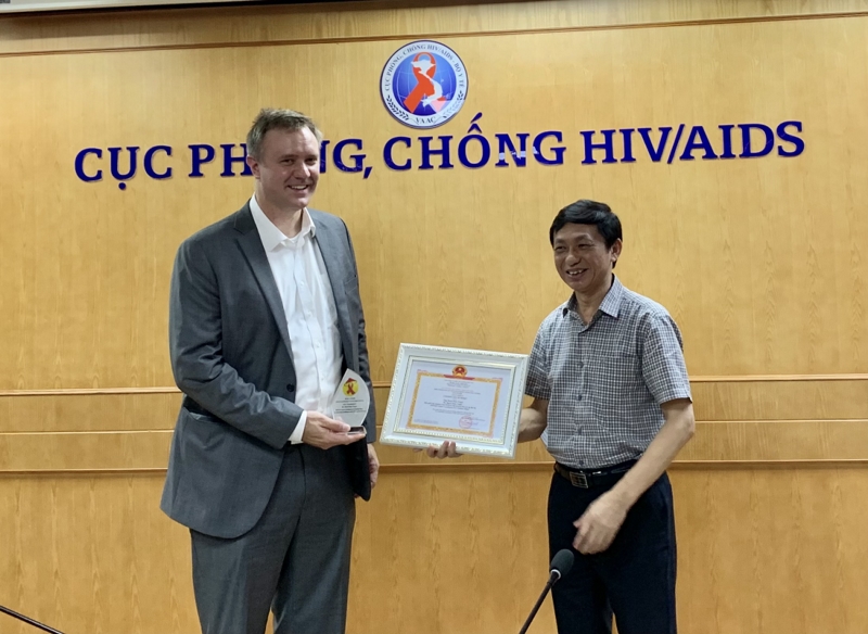 Ngày 25/6, tại Hà Nội, PGS.TS. Nguyễn Hoàng Long, Cục trưởng Cục Phòng, chống HIV/AIDS đã tặng Giấy khen cho ông Mark Peter Troger – Điều phối viên chương trình PEPFAR, Đại sứ quán Hoa Kỳ tại Việt Nam vì những đóng góp của ông cho công cuộc phòng, chống HIV/AIDS.