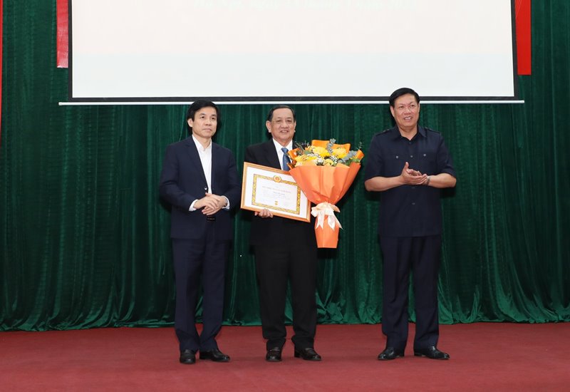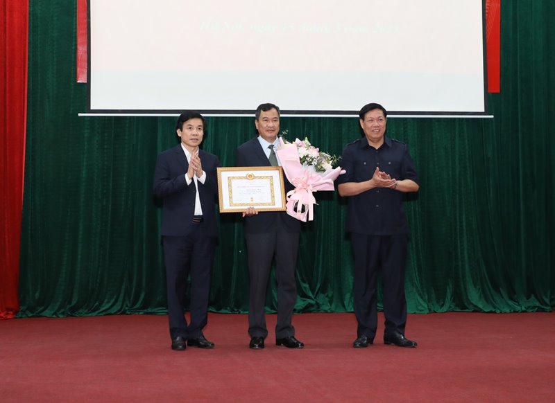 Đồng chí Đại tá Phạm Quang Huy - Đảng viên thuộc Đảng bộ bộ phận Vụ Kế hoạch - Tài chính, Bộ Y tế nhận Huy hiệu 30 năm tuổi Đảng.