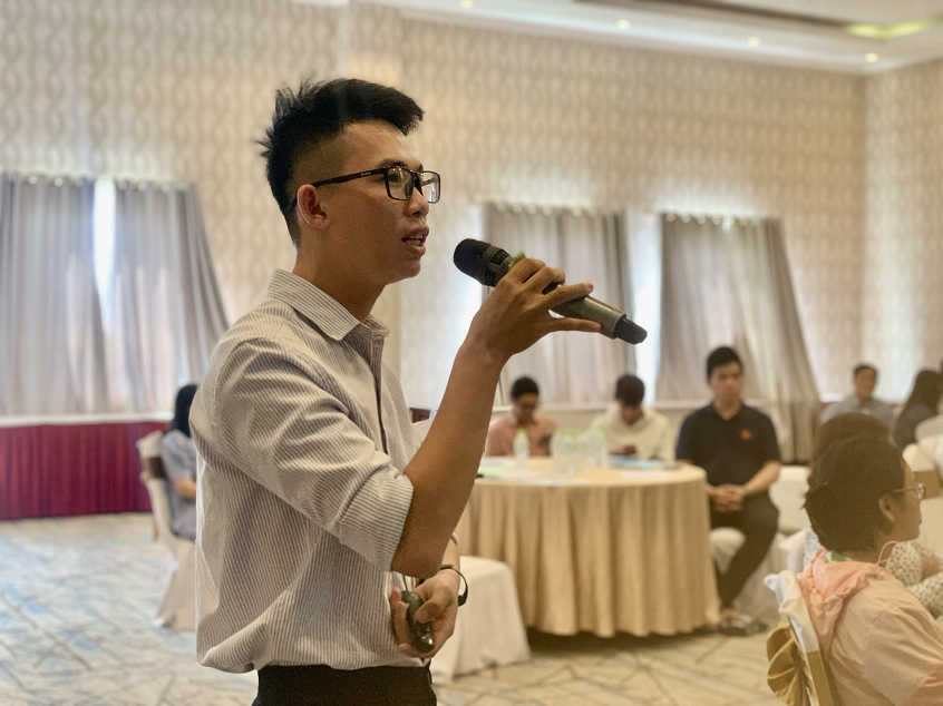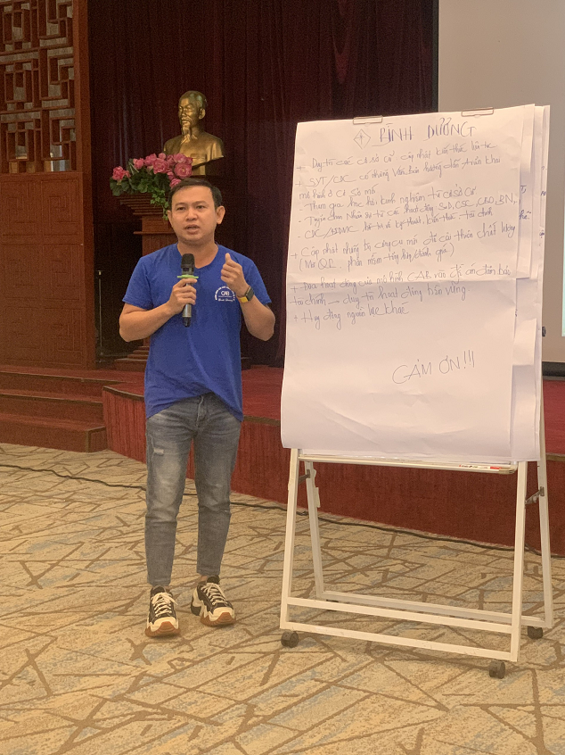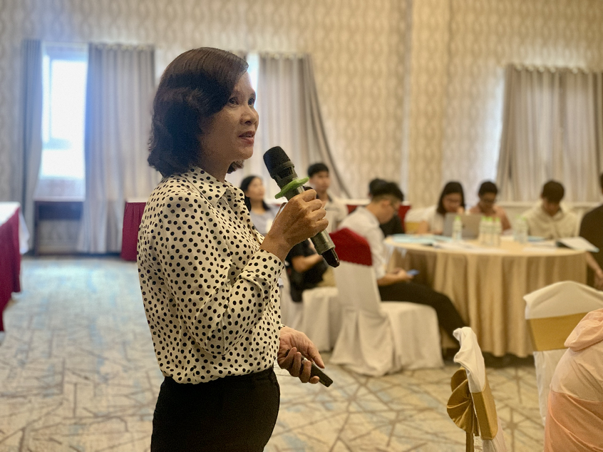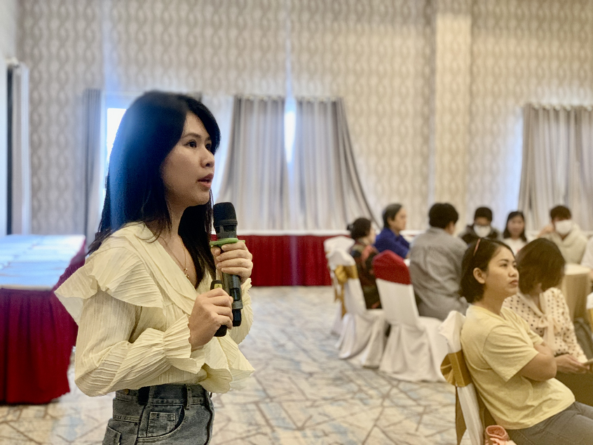Bs. Đặng Thị Nhật Vinh, đến từ tổ chức BIDMC chia sẻ về mô hình CAB – Nhóm nâng cao chất lượng dịch vụ và những trải nghiệm về chương trình giảm kỳ thị và phân biệt đối xử liên quan đến HIV tại cơ sở y tế
