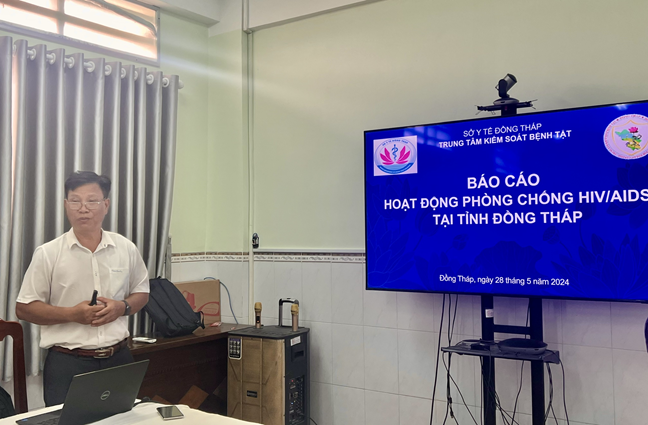 BS. Nguyễn Ngọc Quý, Phó trưởng Khoa Phòng, chống HIV/AIDS, Trung tâm Kiểm soát bệnh tật Đồng Tháp báo cáo Đoàn công tác: