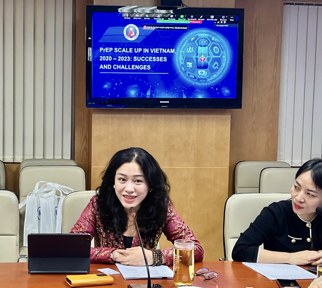 Phát biểu tại buổi tiếp Đoàn, PGS.TS. Phan Thị Thu Hương, Cục trưởng cho biết: Để góp phần ngăn chặn dịch HIV có xu hướng tăng nhanh ở nhóm MSM và ở những người có hành vi nguy cơ cao, việc triển khai điều trị PrEP tại Việt Nam là hiệu quả, kịp thời và phù hợp trong bối cảnh hình thái dịch đang dần chuyển sang lây truyền qua đường tình dục, trên nhóm tỷ lệ nhiễm HIV mới cao trong nhóm Nam (tập trung nhóm MSM). Thời gian tới Việt Nam sẽ tiếp tục mở rộng nhanh chương trình như là một trong những can thiệp dự phòng mũi nhọn hiện nay để giảm tỷ lệ nhiễm mới HIV. Với quan điểm thay đổi cách tiếp cận truyền thống, Việt Nam tổ chức các mô hình cung cấp dịch vụ hoặc kết hợp, đa dạng hoá nhiều mô hình trong cung cấp dịch vụ điều trị PrEP để đảm bảo phù hợp với khách hàng; chú trọng các giải pháp tiếp cận đối với nhóm người trẻ tuổi có hành vi nguy cơ cao nhiễm HIV hiện nay, đặc biệt là các MSM trẻ tuổi. PrEP Việt Nam đã vượt mục tiêu quốc gia đề ra và trở thành quốc gia dẫn đầu khu vực Châu Á về tỷ lệ tiếp nhận PrEP. Cục trưởng cũng thể hiện mong muốn qua buổi làm việc hôm nay, Việt Nam cũng sẽ học hỏi được nhiều bài học trong các lĩnh vực từ nước bạn Bhutan.