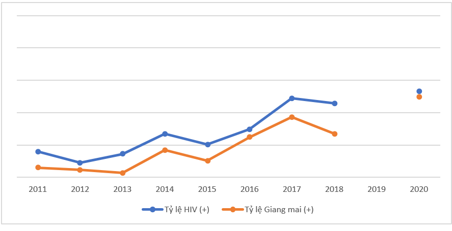 Tỷ lệ nhiễm giang mai trong nhóm MSM cũng tăng nhanh từ 2,6% năm 2015 lên 9,3% năm 2017 và 12,5% năm 2020