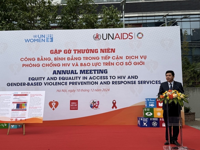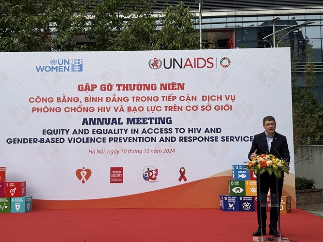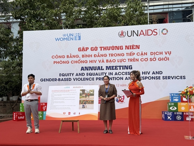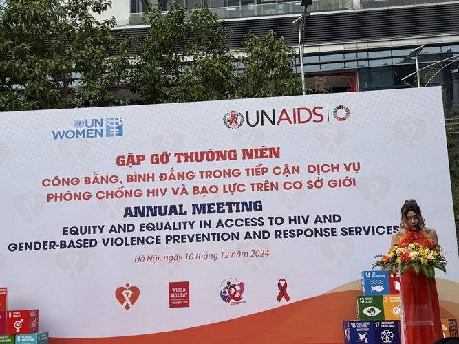 Ngày 10/12/2024, tại Hà Nội, Cơ quan của Liên Hợp Quốc về bình đẳng và trao quyền cho phụ nữ (UN Women Việt Nam) và Chương trình Phối hợp của Liên Hợp Quốc về HIV/AIDS (UNAIDS) tổ chức hoạt động Gặp gỡ thường niên “Công bằng, bình đẳng trong tiếp cận dịch vụ phòng chống HIV và bạo lực trên cơ sở giới”.