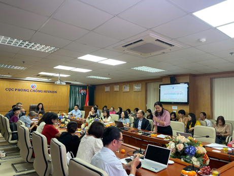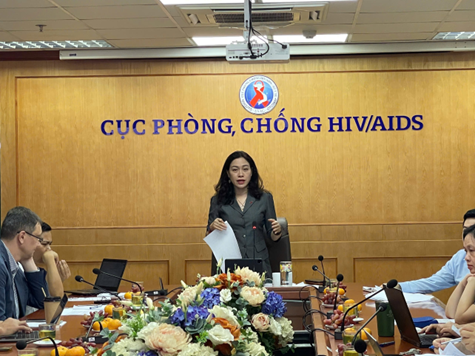 ThS. BS. Nguyễn Quỳnh Mai, Phó trưởng phòng Dự phòng lây nhiễm HIV báo cáo tại cuộc họp