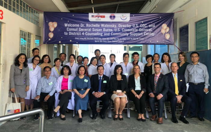 Sáng ngày 17/3, Bs Rochell Paula Walensky, Giám đốc CDC Hoa Kỳ đã thăm và làm việc tại Khoa Tư vấn, điều trị nghiện chất và HIV/AIDS (trước đây là Khoa Tham vấn hỗ trợ cộng đồng). Cùng tham dự còn có Bà Consul General Susan Burns – Tổng lãnh sự Hoa Kỳ; Ông John MacArthur – Giám đốc CDC Khu vực Đông Nam Á; Ông Eric Dziuban - Giám đốc CDC Việt Nam cùng các thành viên của đoàn. Tiếp đón đoàn, đại diện Sở Y tế có BS.CKII. Nguyễn Hữu Hưng, Phó Giám Đốc Sở Y Tế, TS Nguyễn Thị Minh Tâm, trưởng phòng Dự phòng lây nhiễm HIV, Cục phòng chống HIV/AIDS. Về phía Trung tâm Y tế Quận 4 có BS.CK1. Nguyễn Xuân Huân – Giám đốc, Ths.BS. Võ Thị Ngọc Thúy, Phó Giám Đốc trung tâm.