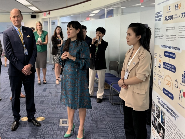 Tại đây Giám đốc CDC Hoa Kỳ cùng đoàn công tác đã gặp gỡ  thành viên của nhóm CAB, đang được hỗ trợ kỹ thuật bởi Tổ chức Hợp tác Phát triển Y tế Việt Nam (HAIVN) và các khách hàng điều trị được nhóm CAB hỗ trợ,  để nghe những chia sẻ về các can thiệp, hỗ trợ của dự án cho cộng đồng các tỉnh Hải Phòng, Bình Dương, Long An, Thái Nguyên, Vũng Tàu, Hà Nội.