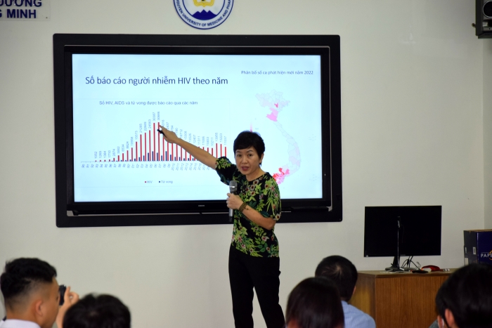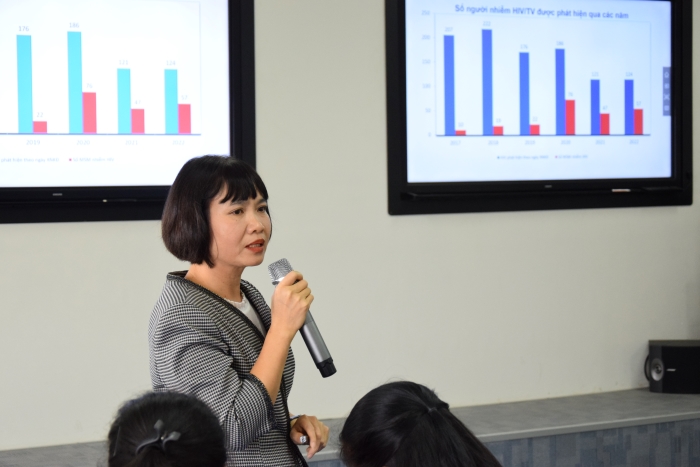 Ths Lê Ái Kim Anh, Phó Giám đốc Trung tâm kiểm soát bệnh tật Thái Nguyên báo cáo về tình hình dịch HIV trên địa bàn tỉnh, đặc biệt nhấn mạnh sự gia tăng ở nhóm nam trẻ có quan hệ tình dục đồng giới (MSM).