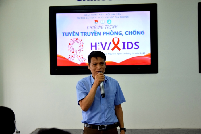 Ông Bùi Ngọc Thanh – Trưởng phòng Đào tạo và Câu lạc bộ, Trung tâm Thanh thiếu niên – Trung ương đoàn TNCS Hồ Chí Minh chỉ đạo các cán bộ đoàn trường đại học Y, Dược Thái Nguyên tăng cường công tác phòng, chống HIV/AIDS trong sinh viên.
