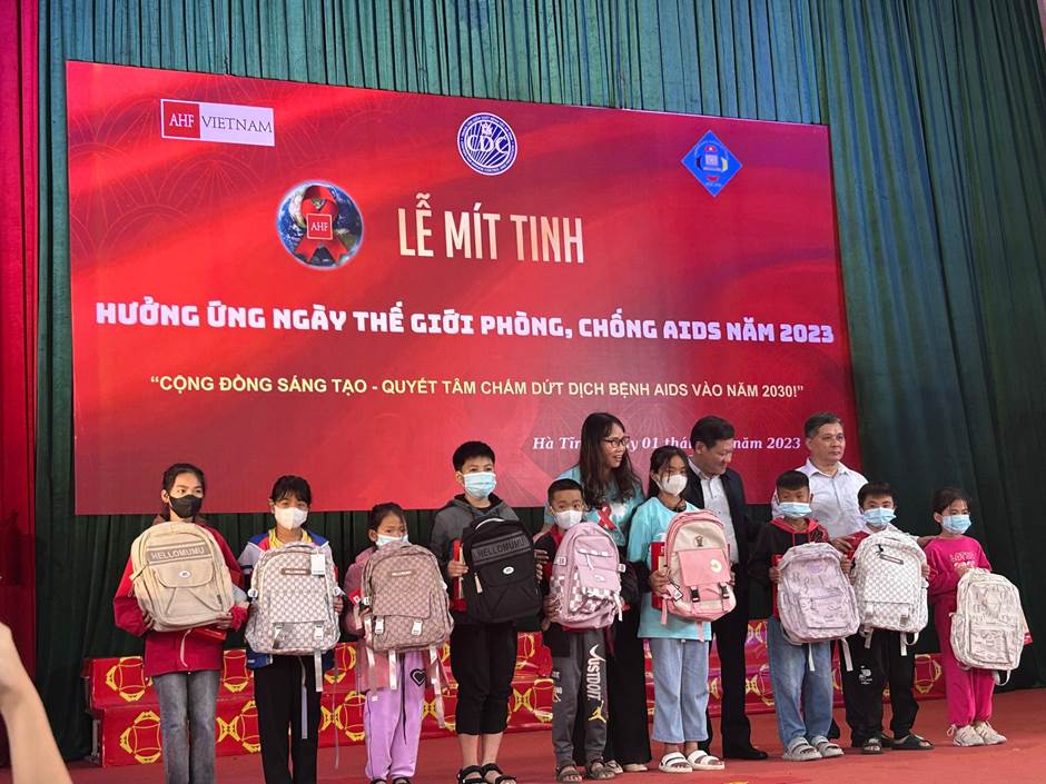 Tại buổi Lễ, Lãnh đạo Cục Phòng, chống HIV/AIDS và Sở Y tế và AHF đã trao quà cho các em thiếu nhi nhiễm HIV có hoàn cảnh khó khăn tại tỉnh Hà Tĩnh.