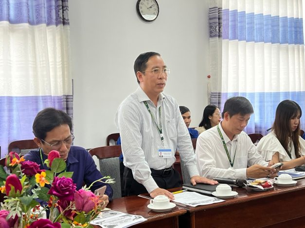 Phát biểu tiếp đoàn, Thầy Lê Hoàng Thanh – Phó bí thư Đảng ủy, Phó Hiệu trưởng nhà trường cảm ơn đoàn công tác của Cục Phòng, chống HIV/AIDS đã đến thăm và làm việc với nhà trường. Trường hiện có khoảng trên 5.000 học sinh, sinh viên chủ yếu là trình độ cao đẳng; trên 400 trung cấp (độ tuổi 15-18); cao đẳng (12+3 = 18-21) hơn 50% là nam; Sinh viên đa phần năng động, ngoài các hoạt động chung của nhà trường: các hoạt động văn thể mỹ, phòng trào vui chơi, hoạt động về cộng đồng; phòng, chống tác hại thuốc lá đặc biệt là phòng, chống HIV/AIDS và Trường là một số ít các đơn vị học đường thực hiện tốt các chương trình can thiệp và phòng, chống tệ nạn xã hội.