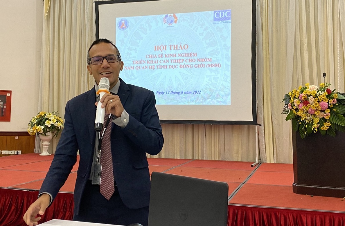 Khai mạc Hội thảo, Bác sỹ Minesh Shah, Cố vấn Trưởng về Y tế - CDC Hoa Kỳ tại Việt Nam phát biểu: CDC là một trong những tổ chức hỗ trợ lâu dài nhất cho Việt Nam trong việc ứng phó với dịch HIV/AIDS. Tính đến Quý 2 năm 2022, PEPFAR/CDC đã hỗ trợ xét nghiệm cho hơn 44.000 khách hàng là MSM/LGBTIQ+, 23.000 khách hàng sử dụng PrEP và hỗ trợ cho 85.000 người điều trị ARV trên cả nước. Các tổ chức dựa vào cộng đồng đóng vai trò quan trọng trong việc kết nối các nhóm đối tượng đích với các dịch vụ xét nghiệm, PrEP, ART, đa dạng hóa các phương thức tiếp cận để đáp ứng nhu cầu của cộng đồng trong việc hỗ trợ CDC các tỉnh/ thành phố cung cấp các dịch vụ phòng, chống HIV/AIDS. Trong thời gian tới, CDC Hoa Kỳ vinh dự được tiếp tục hợp tác với Cục Phòng, chống HIV/AIDS, các đối tác và đặc biệt các tổ chức dựa vào cộng đồng trong việc hỗ trợ kỹ thuật, nguồn lực tài chính nhằm đảm bảo nhóm đối tượng đích MSM cũng như cộng đồng LGBTIQ+ đều có thể tiếp cận các dịch vụ HIV thiết yếu, bất kể nơi nào mà họ đang sinh sống hay làm việc tại Việt Nam.