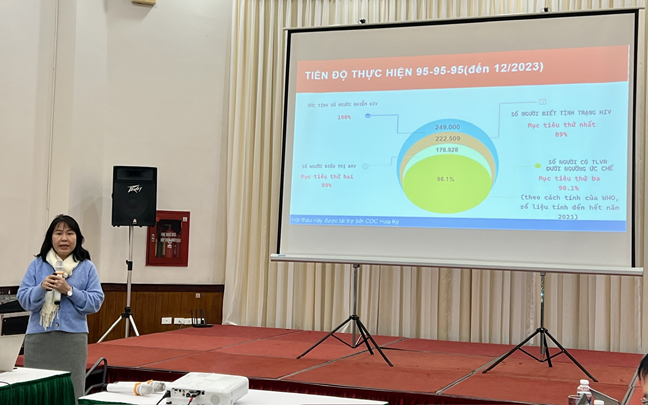 Phát biểu khai mạc Hội thảo, Ths. Võ Hải Sơn cho biết: nước ta đang trong tiến trình triển khai các can thiệp nhằm hướng đến kết thúc bệnh dịch AIDS vào năm 2030. Trong 3 mục tiêu 90-90-90, chúng ta đã đạt được các kết quả rất đáng khích lệ, cụ thể: Đạt 89% đối với mục tiêu 90 thứ nhất (90% người nhiễm HIV biết tình trạng nhiễm HIV của mình); đạt 80% đối với mục tiêu 90 thứ 2 (90% người chẩn đoán nhiễm HIV được điều trị bằng thuốc ARV) với việc điều trị ARV cho trên 178.000 người nhiễm HIV và đạt 98% đối với mục tiêu 90 thứ 3 (90% người điều trị bằng thuốc ARV có tải lượng vi rút dưới ngưỡng phát), vượt chỉ tiêu. Theo đó, tỷ lệ người bệnh điều trị ARV có tải lượng HIV dưới ngưỡng ức chế đã liên tục duy trì trên 95% qua các năm. Năm 2023, lần đầu tiên độ bao phủ xét nghiệm tải lượng HIV đạt trên 80%, tỷ lệ người bệnh có tải lượng dưới ngưỡng ức chế tiếp tục được duy trì trên 98%.