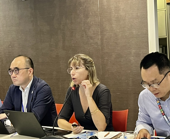 Bà Morgane Bernard, UNODC có bài trình bày về tình hình sử dụng ATS và một số loại ma túy tổng hợp khác trên thê giới và trong khu vực Đông Á
