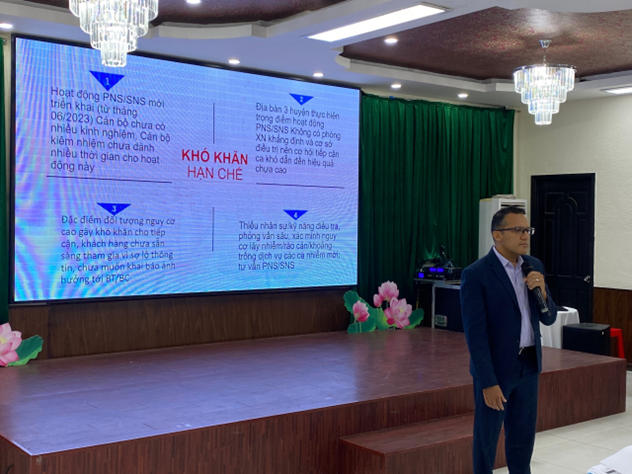 Trao đổi tại Hội thảo, Ông Minesh P Shah - Phó Giám đốc chương trình HIV của CDC Hoa Kỳ tại Việt Nam cho biết hiện nay Việt Nam đang có một chương trình tư vấn xét nghiệm HIV có chất lượng và đa dạng (xét nghiệm cộng đồng, xét nghiệm tại cơ sở y tế, tự xét nghiệm…), chương trình điều trị HIV chất lượng tốt với tỷ lệ người bệnh đạt ức chế vi-rút cao, truyền thông K=K và dịch vụ PrEP hiệu quả, hệ thống giám sát dịch kịp thời và công cụ xét nghiệm nhiễm mới HIV. Khi phối hợp tốt những công cụ này, chúng ta có thể tin tưởng vào khả năng sẽ không còn ca nhiễm mới HIV. Ông Minesh nhấn mạnh, Đồng Tháp đang là 1 trong 4 tỉnh tại khu vực ĐBSCL có số ca HIV cao với số lượng người nhiễm MSM là chủ yếu, vì vậy chúng ta cần chủ động hơn trong việc tiếp cận, tìm ca, bằng mọi cách phải tư vấn, xét nghiệm HIV thông qua công cụ PNS/SNS với nhóm này. Bên cạnh đó, Ông cũng bày tỏ mong muốn Đồng Tháp sẽ cố gắng thúc đẩy và dành nhiều nỗ lực hơn nữa để tăng tốc khắc phục khó khăn, thu hẹp khoảng trống để đạt được các mục tiêu trong vài tháng tới.