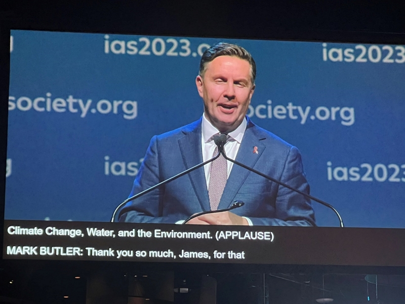 "Hội nghị IAS lần thứ 12 về Khoa học HIV, cuộc họp hàng đầu thế giới về nghiên cứu HIV và các ứng dụng của nó! Chúng tôi rất vui mừng được chào đón bạn trực tiếp tại Brisbane và qua mạng"- Ngài Mark Butler, Bộ trưởng Bộ Y tế và Chăm sóc Người cao tuổi thay mặt Chính phủ Australia chào mừng các đại biểu tham dự hội nghị trong phiên khai mạc.