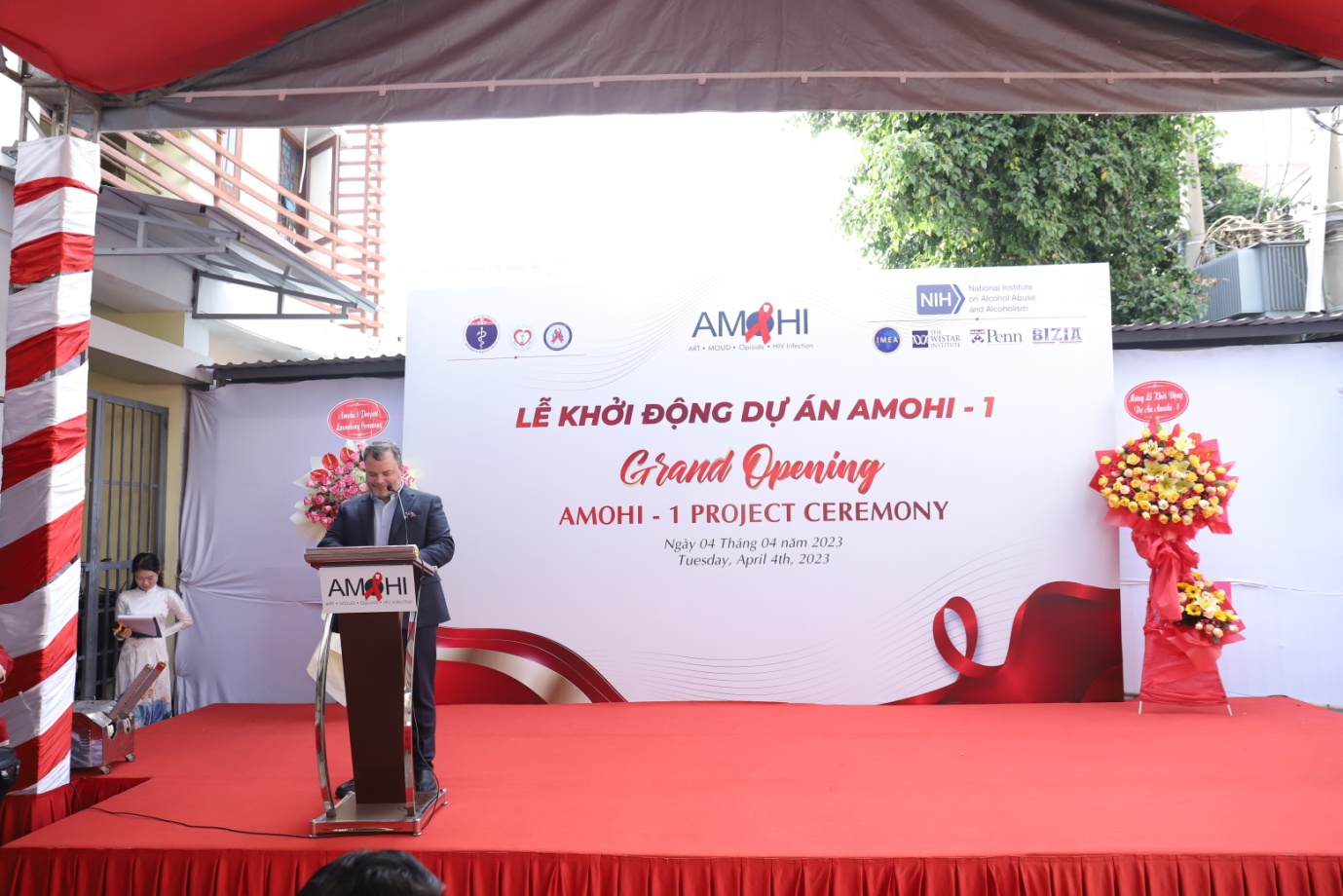 Về phía đối tác nước ngoài có: GS.TS. Luis J. Montaner, Phó Chủ tịch Hoạt động khoa học, Trưởng Chương trình nghiên cứu HIV-1 – Viện Wistar (Hoa Kỳ), nghiên cứu viên chính của dự án; GS.TS.BS David Metzger, Giám đốc Bộ phận nghiên cứu dự phòng HIV – Đại học Pennsylvania Hoa Kỳ, đồng nghiên cứu viên chính nghiên cứu AMOHI-1; BS Jean Pierre Daulouede, Giám đốc Phòng Khám Bizia (Pháp); Ông Vincent Trias, Giám đốc Dự án AMOHI tại Việt Nam; Bà Ma Ling, đại diện Tổ chức CDC Trung Quốc; Bà Flora Canetti, phụ trách Hợp tác Kỹ thuật và đổi mới - Đại sứ quán Pháp tại Việt Nam; BS Navin Saxena, Giám đốc Công ty Dược Rusan Pharma – nhà cung cấp thuốc nghiên cứu Buprenorphine (Addnok).