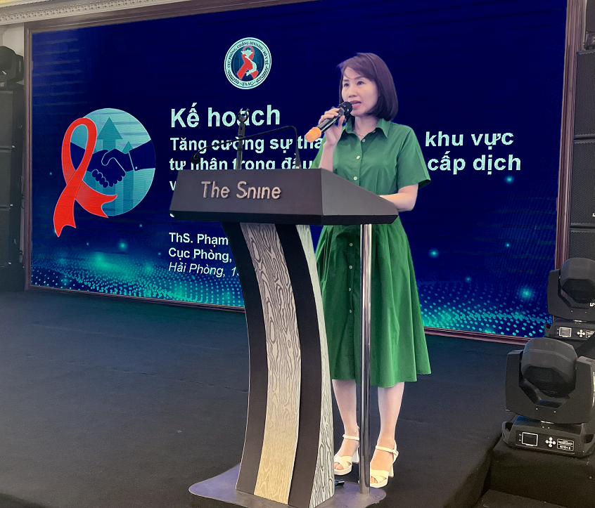 Ths. Phạm Hồng Thúy, Cục Phòng, chống HIV/AIDS trình bày về Kế hoạch tăng cường sự tham gia của khu vực tư nhân trong đầu tư và cung cấp các dịch vụ phòng, chống HIV/AIDS