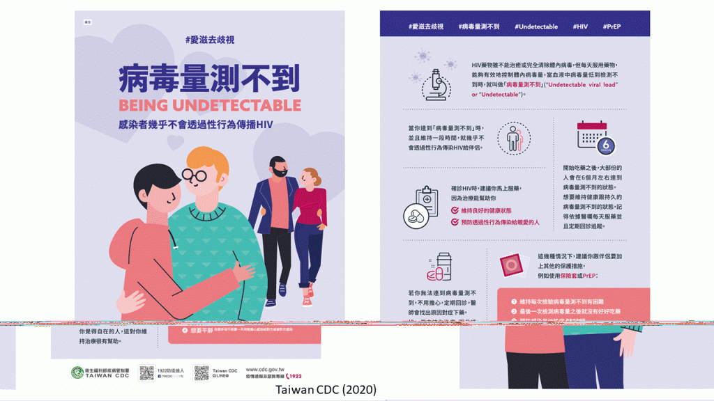 (3) Khái niệm U = U vẫn chưa phổ biến trong các chuyên khoa y tế ngoài chuyên khoa bệnh truyền nhiễm. Ngay cả khi nhân viên y tế biết thông tin về U = U, họ vẫn có thể từ chối điều trị cho người nhiễm HIV / AIDS. Theo một cuộc khảo sát qua điện thoại do Tongzhi Hotline và PRAA thực hiện vào năm 2020, nhiều phòng khám nha khoa vẫn từ chối điều trị cho bệnh nhân nhiễm HIV / AIDS mặc dù không phát hiện được tải lượng vi rút. (4) Sự kỳ thị liên quan đến HIV / AIDS cũng khiến người nhiễm khó tiết lộ tình trạng nhiễm HIV của mình. Điều kiện tiên quyết để những người nhiễm HIV / AIDS nói về việc họ là U = U là họ có thể chia sẻ công khai về tình trạng nhiễm HIV của mình. Mặc dù một số người sẵn sàng công khai nói về tình trạng của họ là có HIV dương tính hoặc không thể phát hiện được, nhưng cuộc khảo sát được thực hiện vào năm 2019 bởi Hornet và HEART trên 2.554 người dùng Hornet cho thấy 79% người dùng HIV + Hornet chọn không tiết lộ tình trạng của họ khi hẹn hò APP, hãy cùng với tải lượng vi rút của họ.