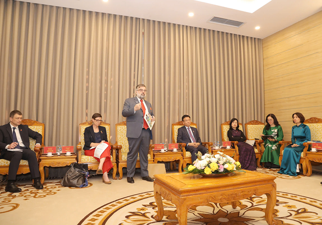 Phát biểu tại buổi gặp mặt, ông Eamonn Murphy - Giám đốc Chương trình phối hợp của Liên hợp quốc về HIV/AIDS khu vực Châu Á – Thái Bình Dương và khu vực Đông Âu – Trung Á chúc mừng những bước tiến mạnh mẽ của Việt Nam hướng tới mục tiêu kết thúc dịch AIDS vào năm 2030.