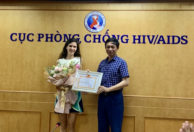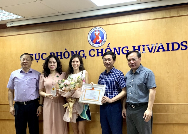 Ngày 21/6, tại Hà Nội, PGS.TS. Nguyễn Hoàng Long, Cục trưởng Cục Phòng, chống HIV/AIDS đã tặng Giấy khen cho TS. Delphine Rapoud, Phó Điều phối các điểm nghiên cứu của ANRS tại Việt Nam vì những đóng góp của bà cho công cuộc phòng, chống HIV/AIDS tại Việt Nam (từ năm 2014 đến nay).