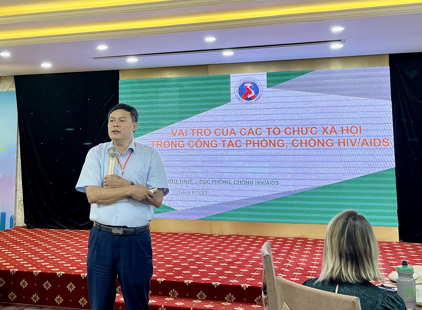 Ths. Đỗ Hữu Thủy, Cục Phòng, chống HIV/AIDS trình bày về vai trò của các tổ chức xã hội trong phòng, chống HIV/AIDS