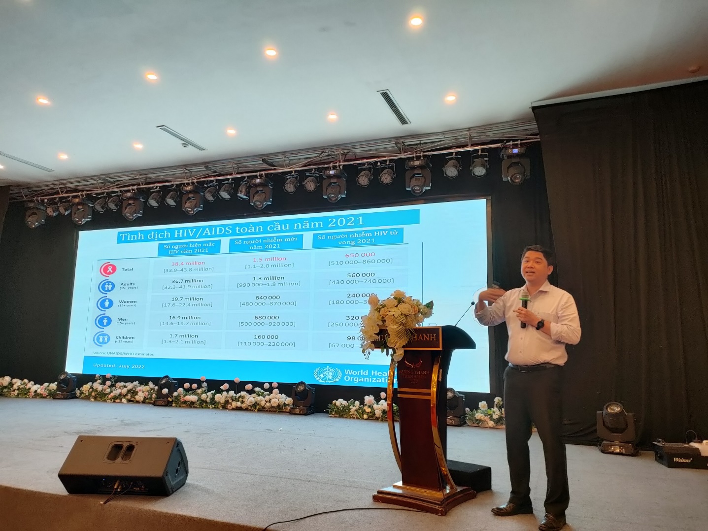 Ths Võ Hải Sơn, Trưởng phòng Giám sát xét nghiệm chia sẻ về tình hình dịch HIV tại tập huấn