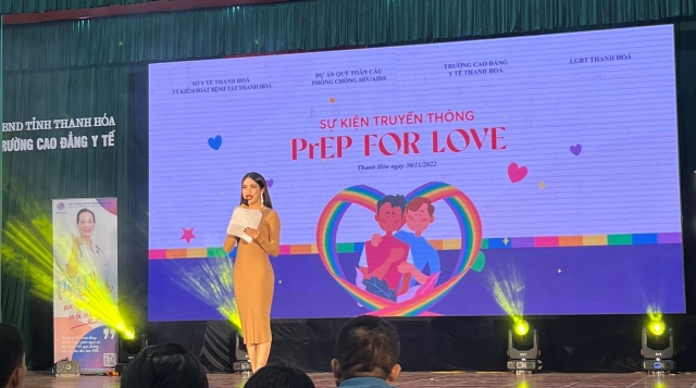 Ngày 30/11/2022, Được sự đồng ý của Sở Y Tế, được sự tài trợ của Dự án Quỹ Toàn Cầu phòng chống HIV/AIDS, Trung tâm Kiểm soát bệnh tật Tham dự sự kiện có đại diện lãnh đạo và cán bộ CDC tỉnh Thanh Hóa, đại diện lãnh đạo và các phòng ban trường Cao đẳng y tế, đại diện cộng đồng tại tỉnh Thanh Hóa. Sự kiện thu hút hơn 400 sinh viên trường Cao đẳng y tế Thanh Hóa, và cộng đồng LGBT Thanh Hóa. Tại sự kiện các đại biểu được cập nhật về kiến thức về điều trị dự phòng trước phơi nhiễm bằng thuốc kháng HIV (PrEP), kiến thức về HIV và mô hình tự xét nghiệm tại cộng đồng. Cũng tại sự kiện người tham dự còn được thưởng thức nhiều tiết mục văn nghệ đặc sắc, do cộng đồng LGBT Thanh Hóa và đoàn trường Cao đẳng y tế Thanh Hóa thực hiện. Đồng thời Sự kiện còn được hỗ trợ từ Hoa khôi chuyển giới Hà Nội 2018 MIA Ngọc Duyên, đại sứ truyền thông cho chương trình PrEP tại Thanh Hóa cùng nhóm HaNoi Trans Model. Sự kiện được diễn ra trước thềm ngày thế giới phòng chống HIV/AIDS, góp phần sớm đẩy lùi dịch AIDS, tiến nhanh tới mục tiêu không còn ca nhiễm mới tại Việt Nam vào năm 2030. Và đúng với slogan năm nay: CHẤM DỨT DỊCH AIDS-THANH NIÊN SẴN SÀNG… Một số hình ảnh của sự kiện Các đại biểu chụp ảnh lưu niệm tại sự kiện Toàn cảnh sự kiện BS Phạm Hữu Hà, CDC Thanh Hóa chia sẻ tại Sự kiện Bạn Mia Ngọc Duyên, đại sứ PrEP chia sẻ tại sự kiện