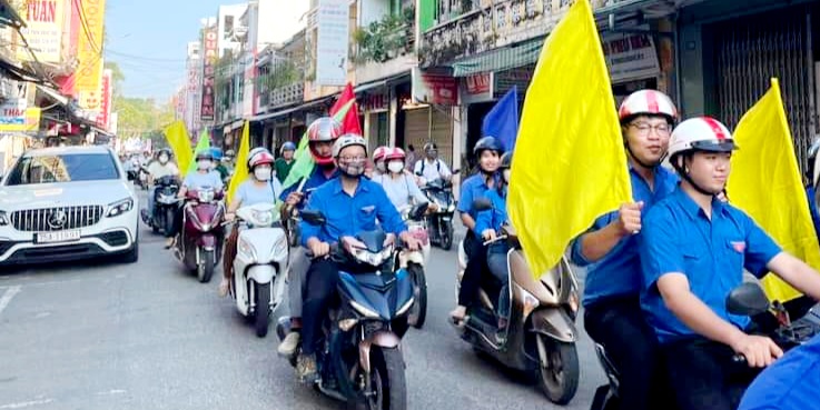 Đoàn viên thanh niên tuần hành qua các tuyến đường trung tâm của phường Đông Ba