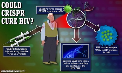 Liệu pháp điều trị cho bệnh nhân HIV dựa trên công nghệ chỉnh sửa gen CRISPR. Ảnh: Daily Mail
