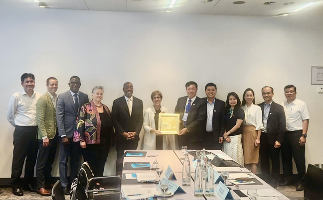 Cũng trong sáng ngày 24/7, bên lề Hội nghị quốc tế về AIDS năm 2024 tại Cộng hòa liên bang Đức, Thứ trưởng Bộ Y tế Đỗ Xuân Tuyên cùng đoàn công tác đã có buổi gặp gỡ với TS. Tessie San Martin, Giám đốc Điều hành FHI 360 toàn cầu.