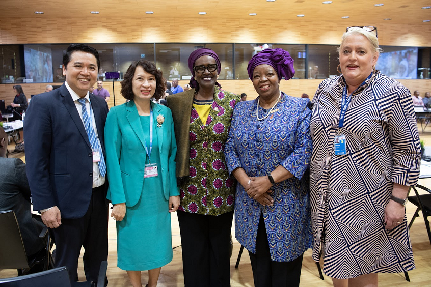 Thứ trưởng Liên Hương chụp ảnh lưu niệm cùng Bà Winnie Byanyima, Giám đốc Điều hành của UNAIDS