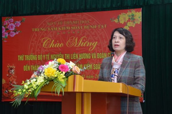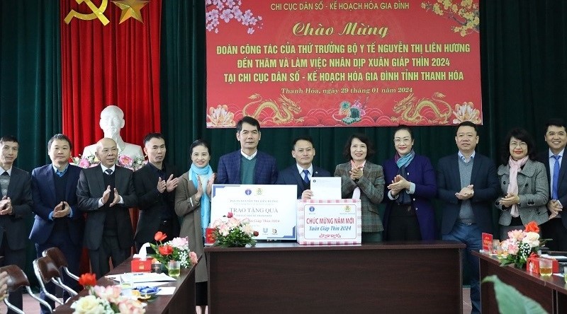 Thứ trưởng Bộ Y tế Nguyễn Thị Liên Hương cùng đoàn đã đến thăm và tặng quà cho Trung tâm Kiểm soát bệnh tật tỉnh Thanh Hóa, Chi cục Dân số - Kế hoạch hóa gia đình (KHHGĐ). Tại những nơi đến thăm, tặng quà, đại diện lãnh đạo Sở Y tế và Công đoàn ngành Y tế Thanh Hóa, lãnh đạo các đơn vị đã báo cáo kết quả hoạt động và công tác chăm lo Tết Nguyên đán Giáp Thìn năm 2024 cho đoàn viên của ngành, đơn vị.