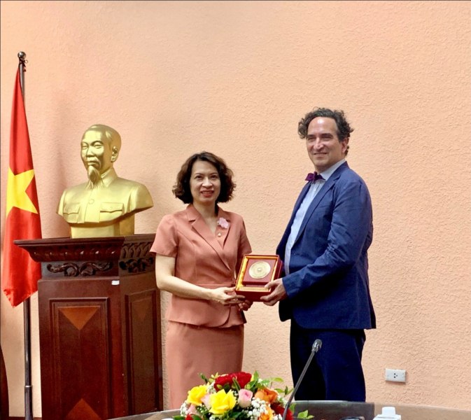 Thứ trưởng Liên Hương tặng biểu tượng Trống đồng cho Ngài Parviez Hosseini