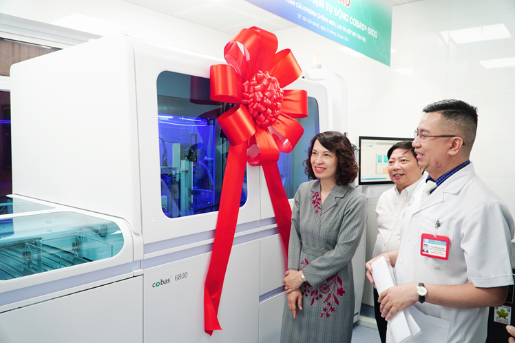 Thứ trưởng Nguyễn Thị Liên Hương thăm quan việc lắp đặt hệ thống xét nghiệm tự động Cobas 6800 tại Bệnh viện Chợ Rẫy