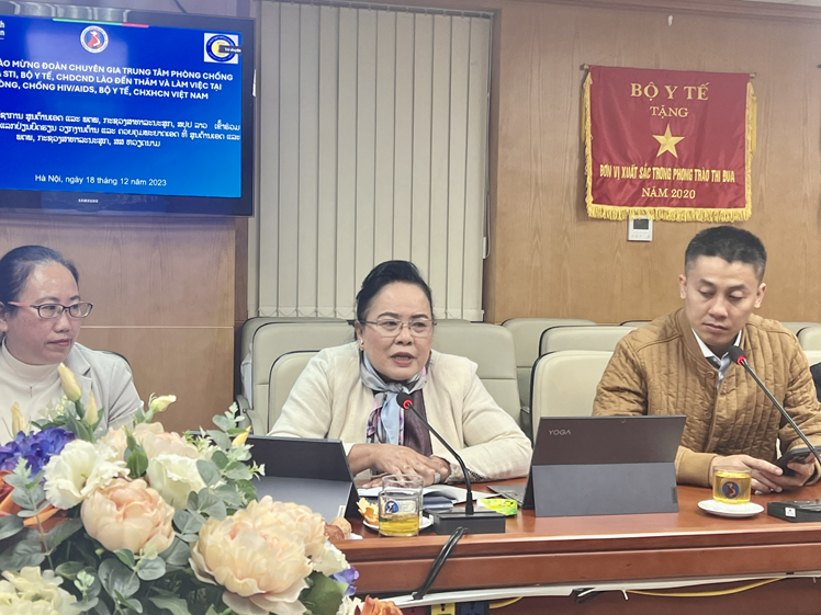 Đoàn chuyên gia do bà Bà PANINA PHOUMSAVANH, Giám đốc Trung tâm phòng, chống HIV/AIDS và STI Lào làm trưởng đoàn cùng đại diện các phòng thuộc Trung tâm.