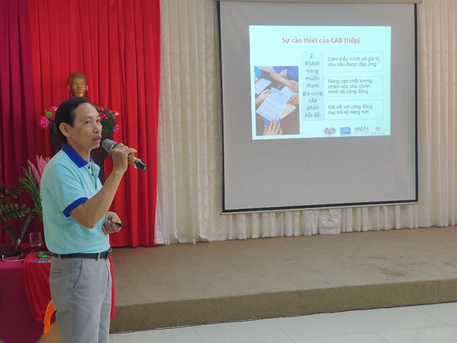 Ông Nguyễn Anh Phong, Đại diện mạng lưới VNP+ Phía nam Chia sẻ kinh nghiệm triển khai nhóm nâng cao chất lượng dịch vụ