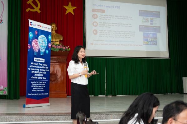 Tại Lễ khởi động, TS. Nguyễn Thị Khả Tú, Phó Trưởng phòng Nghiệp vụ Y Sở Y tế đã giới thiệu nội dung Kế hoạch Tăng cường sự tham gia của khu vực tư nhân trong đầu tư và cung cấp sản phẩm, dịch vụ phòng, chống HIV/AIDS trên địa bàn tỉnh Đồng Tháp, giai đoạn 2024-2026 (Kế hoạch PSE). Kế hoạch bao gồm 2 mục tiêu chính: (1) Huy động, tăng cường tham gia của khu vực tư nhân trong cung cấp sản phẩm và dịch vụ HIV, tăng ít nhất 10% đến cuối 2026; (2) Hoàn thiện công cụ theo dõi, đánh giá sự tham gia của khu vực tư nhân trong đầu tư, cung cấp sản phẩmvà dịch vụ phòng chống HIV ở tỉnh. Theo kế hoạch, tỉnh Đồng Tháp sẽ triển khai các hoạt động chính bao gồm: Đánh giá hàng năm về việc triển khai Kế hoạch tăng cường sự tham gia của khu vực tư nhân trên địa bàn tỉnh Đồng Tháp; Nâng cao năng lực cho khu vực tư nhân; Truyền thông, nâng cao nhận thức, tăng tính tiếp cận và sử dụng sản phẩm, dịch vụ HIV do khu vực tư nhân cung cấp; Đánh giá các mô hình hiệu quả do khu vực tư nhân triển khai tại tỉnh Đồng Tháp; Xây dựng hệ thống theo dõi đánh giá và thu thập thông tin về tham gia đầu tư và cung cấp sản phẩm và dịch vụ HIV/AIDS tại địa phương; Tổ chức hội thảo, hội nghị sơ kết, tổng kết hàng năm đánh giá sự tham gia của khu vực tư nhân.