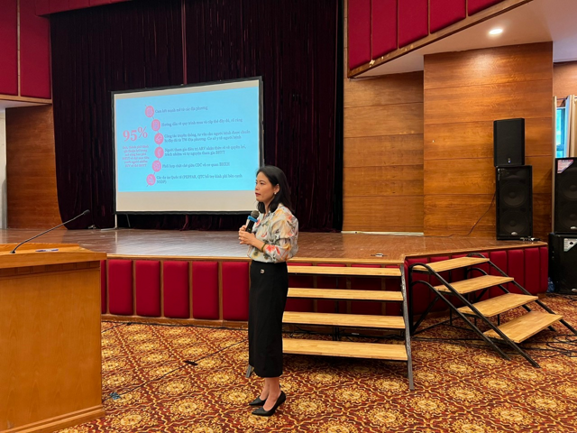 TS. Dương Thúy Anh, Phó Chánh Văn phòng Cục chia sẻ về nguồn lực và tài chính cho công tác phòng, chống HIV/AIDS