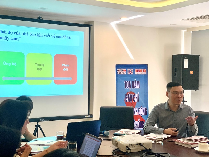 Cũng tại buổi tọa đàm, các phóng viên được ông Hoàng Thanh Hải, tổ chức PEPFAR chia sẻ về tình hình Giới và HIV/AIDS cùng các nguyên tắc khi viết về HIV/AIDS.