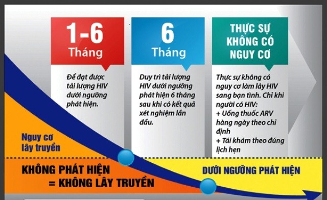 Khi sử dụng thuốc ARV sẽ làm tải lượng vi rút thấp dưới ngưỡng phát hiện và không có nguy cơ lan truyền HIV qua đường tình dục (K=K)